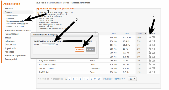 Augmenter le quotas de son dossier personnel dans son ENT