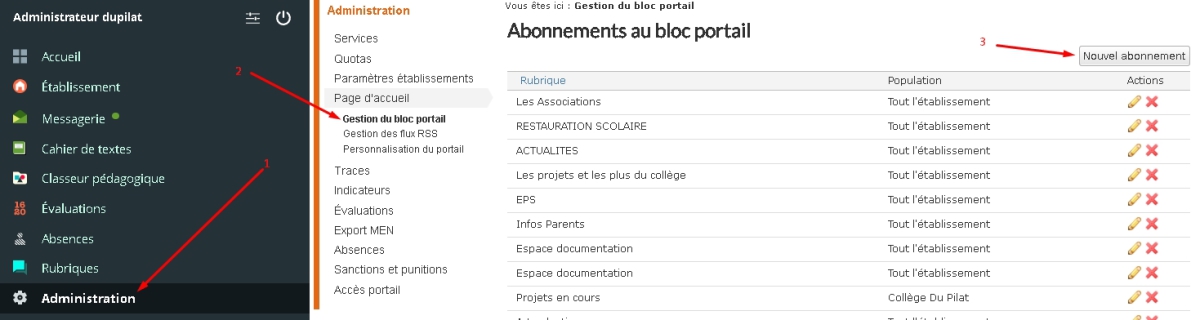 Gestion du portail