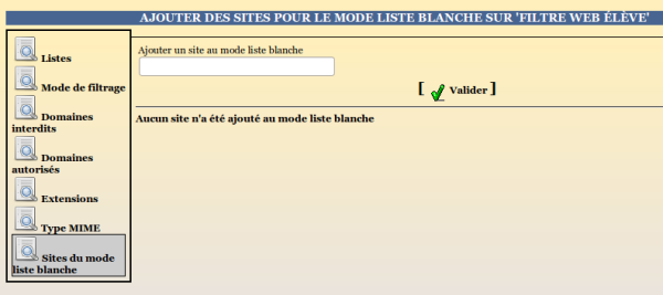 Si ce mode a été choisi comme politique de filtrage pour un groupe de machines, c'est ici qu'il faut venir lister les seuls sites autorisés.