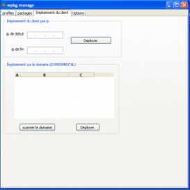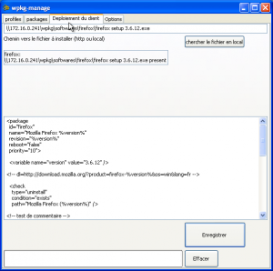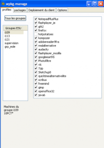 Wpkg-Manage est une interface à destination de l'utilisateur. Vous ne devriez avoir que ce logiciel à utiliser. Il est développé par Christophe Deze, et est téléchargeable à cette adresse. Il s'installe de manière classique dans u:\wpkg-manage mais pensez impérativement à décocher les exemples de packages lors de l'installation !