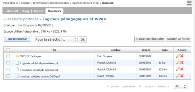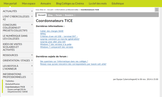 L'utilisation d'une rubrique "Coordonnateurs TICE" dans Cybercollèges42 : on y trouve la procédure pas à pas pour installer ou mettre à jour un "package" et on peut télécharger les fichiers xml.