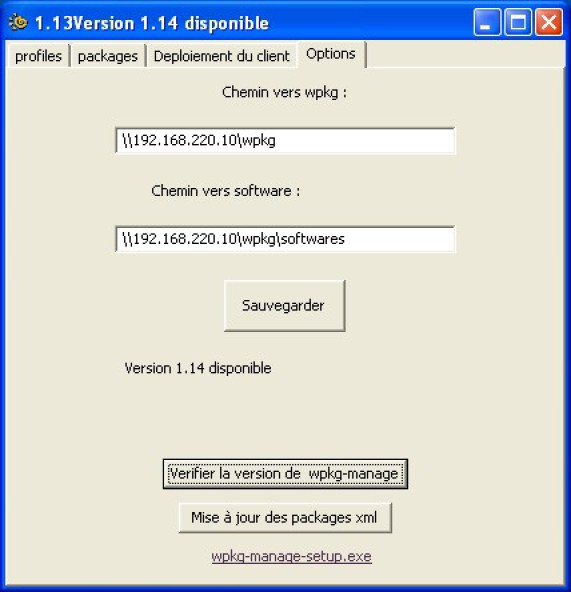 2 - Cliquez sur « Vérifier la version de wpkg-manage » puis cliquez sur le lien « wkpg-manage-setup.exe »