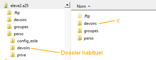 Et à la fin de l'évaluation, l'élève retrouve une configuration classique et n'a plus accès au dossier Y. Il ne peut donc pas continuer son devoir "ailleurs".