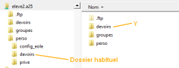 Les énoncés vont alors se ranger dans un dossier devoirs qui est propre à chaque utilisateur, mais qui se situe en dehors du "perso".