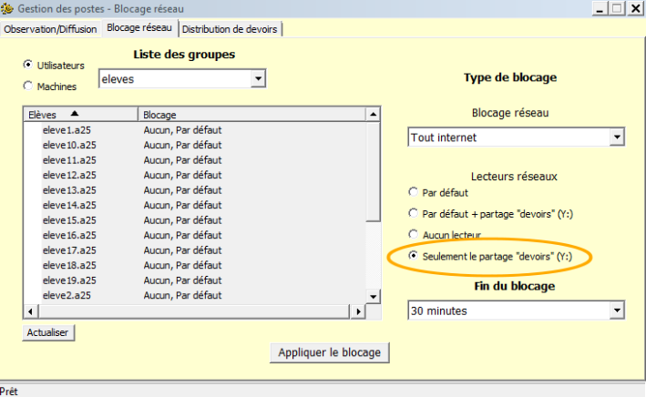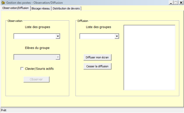 Par contre, Gestion des Postes, présente aussi la possibilité d'envoyer l'écran du prof sur les postes élèves.
