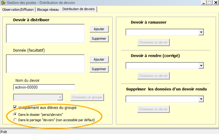 Au moment de l'évaluation, l'enseignant va donner accès aux élèves "seulement au partage devoirs Y".